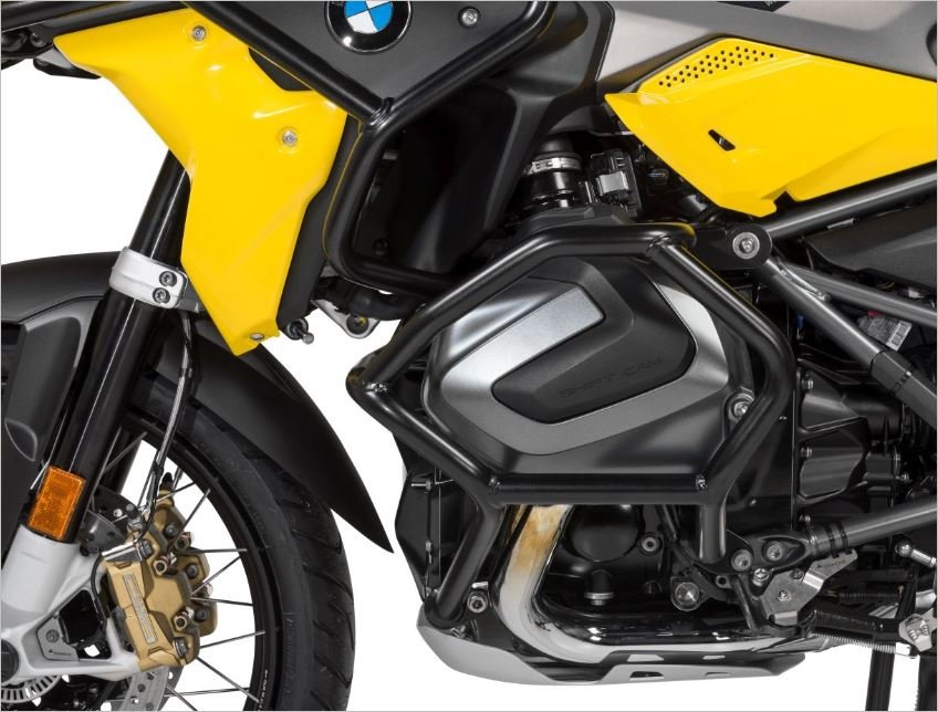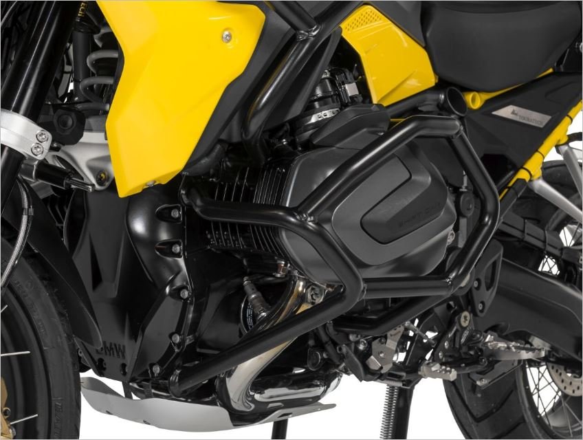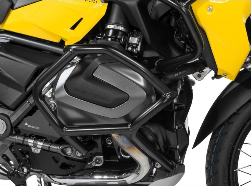 Una «jaula» de tubos de acero inoxidable de 25 mm de diámetro y 2 mm de espesor envuelve completamente los cilindros . Cualquier fuerza que se produzca se desvía y distribuye de forma segura para amortiguar los impactos. Numerosos puntos de montaje y flexión garantizan una protección segura no solo de los cilindros, sino también del chasis y el motor de tu R1250GS .