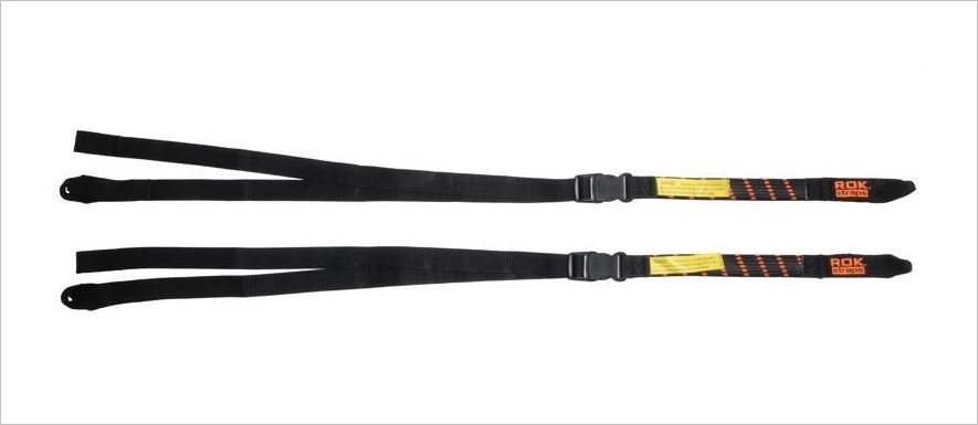Combina una cinta larga con un cordón elástico plano de gran longitud. Una hebilla de ajuste une ambas partes y permite regular fácilmente la longitud de la correa. Cada extremo de la correa cuenta con una presilla que permite sujetarla de forma permanente a puntos de anclaje o simplemente pasarla por encima de ellos. Su diseño superior garantiza la máxima seguridad, resistencia, facilidad de uso y durabilidad.