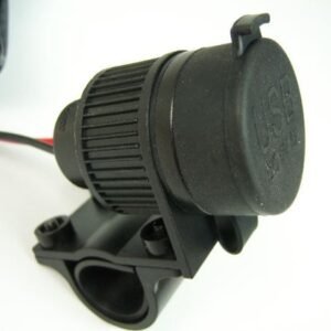 Este enchufe USB doble para conectar a la batería de la motocicleta puede instalarse o fijarse al manillar con su robusto soporte.