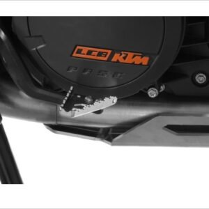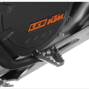 Un apoyo firme en el freno es fundamental, sobre todo en conducción todoterreno. Por eso, la extensión del pedal de freno que hemos desarrollado para la KTM 1190 Adventure tiene un diseño dentado, al igual que nuestros probados reposapiés *Works* para largas distancias.