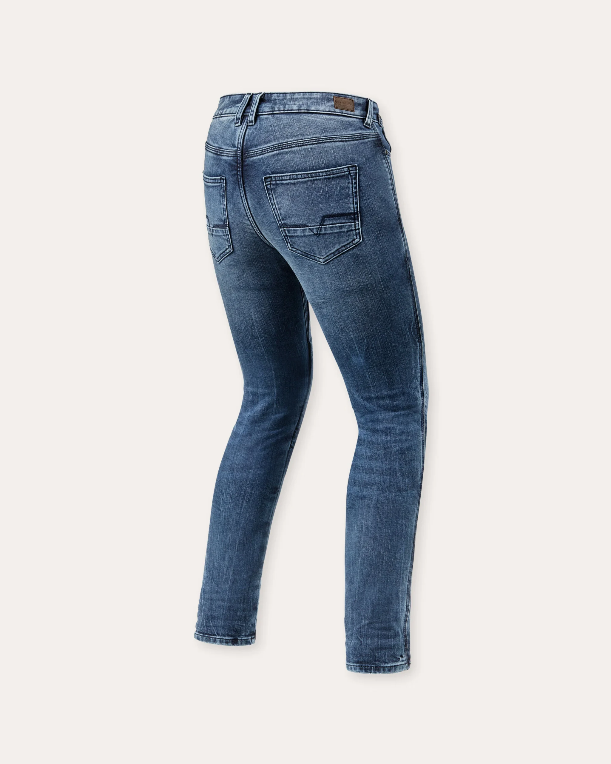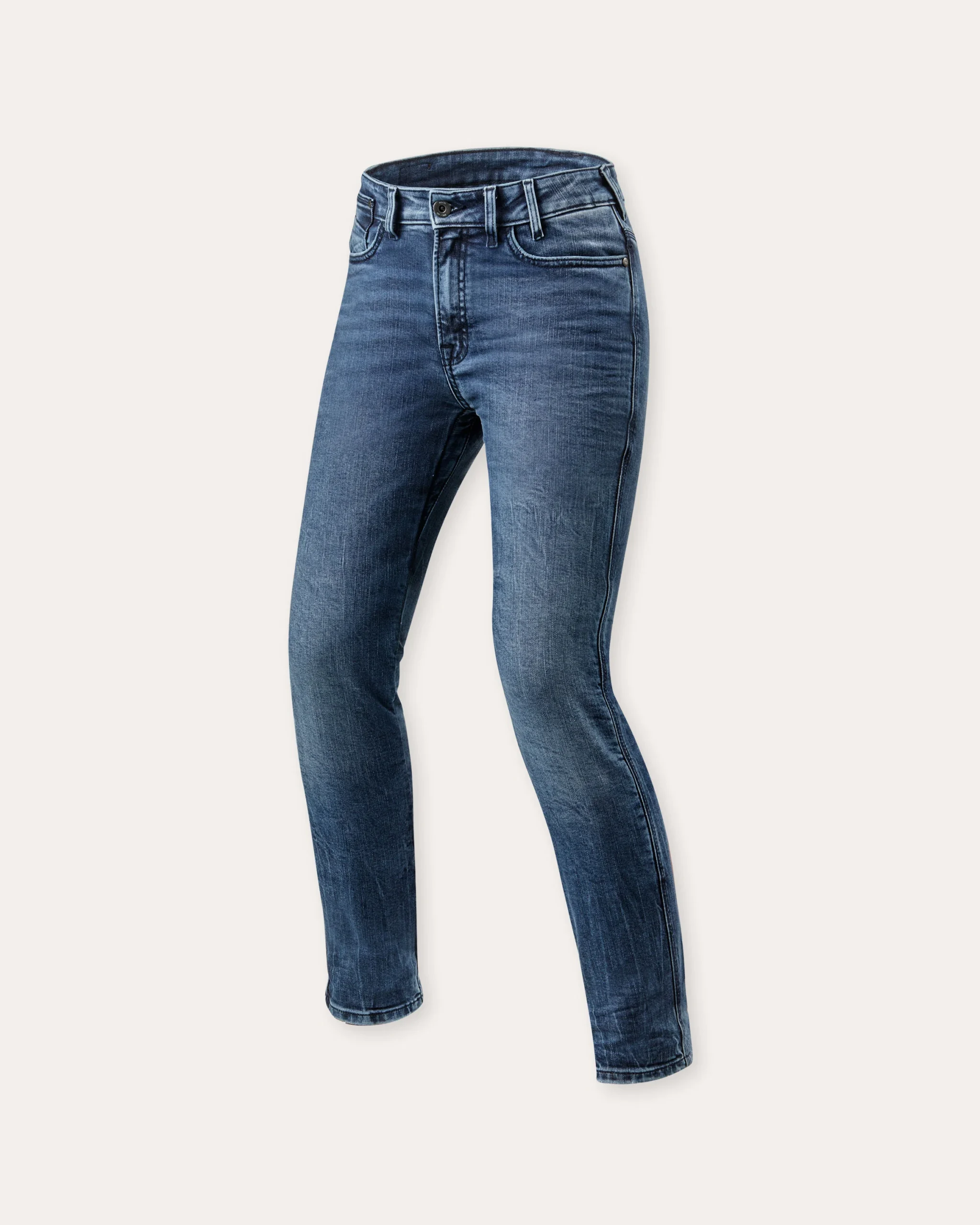 Los vaqueros Victoria Ladies SF son de encaje estrecho (slim fit) y de cintura alta, para mujeres que quieren mantener su estilo personal cuando van en moto. Los Victoria Ladies se pueden combinar con varios estilos de chaquetas sin sacrificar su continua protección.