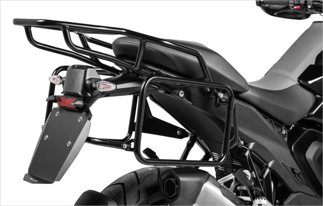Al mismo tiempo, el portamaletas adopta el diseño del chasis trasero de la BMW R 1300 GS. Por primera vez, los tubos de acero inoxidable de 18×2 mm están reforzados con elementos 3D de chapas de acero inoxidable de 2 y 3 mm de espesor. ¡No solo es una mejora estética!