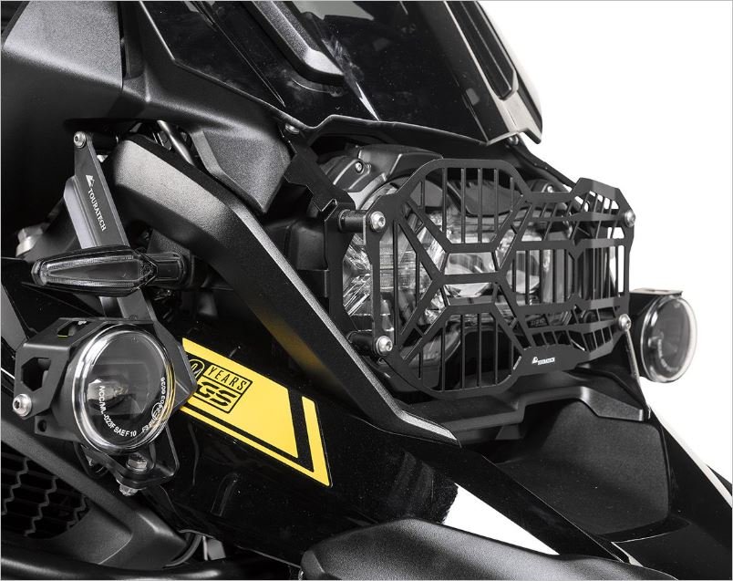 Nuestro protector de faro probado, fabricado en acero inoxidable de 2 mm de espesor con recubrimiento de polvo negro, protege eficazmente el faro de tu GS.
