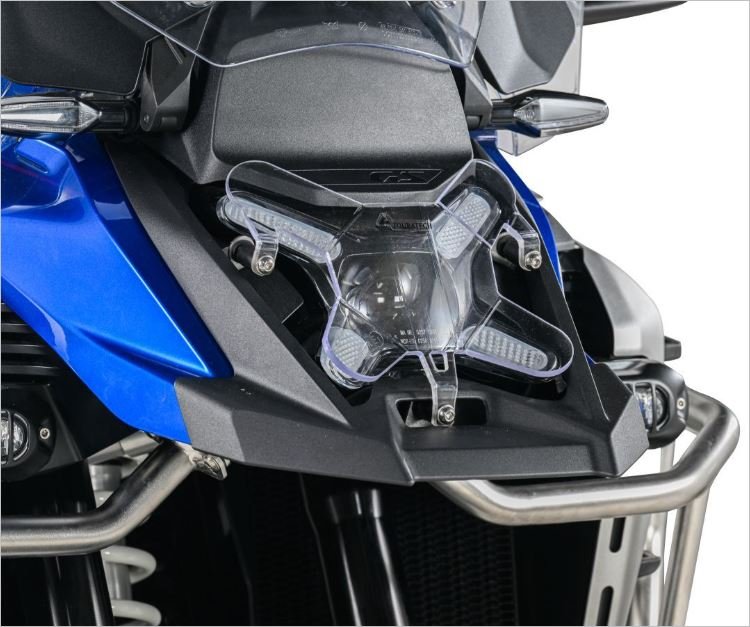 ¡ La BMW R 1300 GS Adventure tiene un faro realmente llamativo! La lente, relativamente pequeña, ofrece una menor superficie de impacto que los faros grandes, ¡pero aun así merece una protección adecuada!