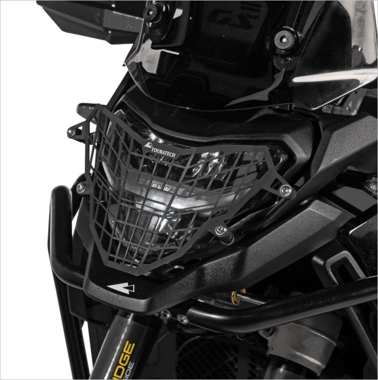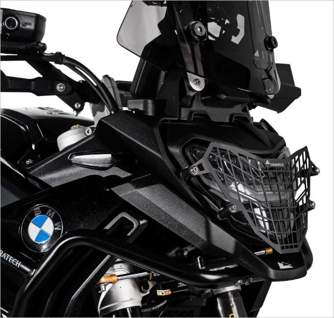 La F900GS es una motocicleta ideal para explorar el mundo tanto en carretera como fuera de ella. Especialmente en caminos de grava, los faros siempre corren el riesgo de dañarse con las piedras que lanza el vehículo que va delante. El protector de faros de Touratech evita eficazmente que las piedras más grandes dañen la lente del faro. La rejilla crea un aspecto todoterreno robusto y modifica considerablemente la apariencia de la moto.