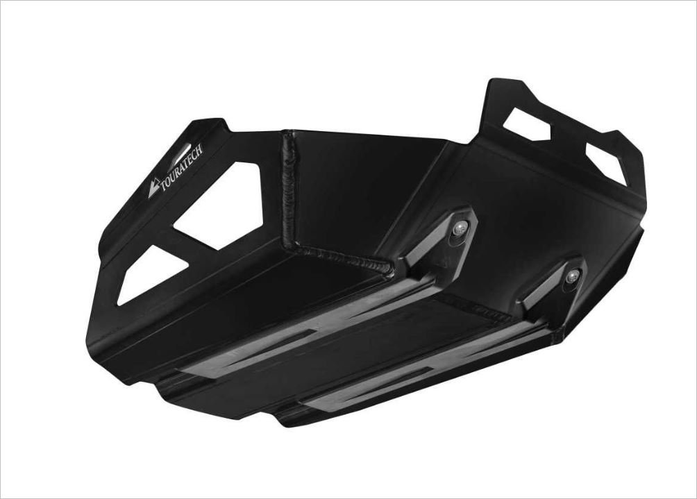 El protector de motor Touratech «Expedition» ofrece una protección óptima para su motocicleta. La suciedad y las piedras que levanta la rueda delantera no alcanzan el motor ni el colector. El protector de motor Touratech previene eficazmente daños desagradables, como abolladuras en el colector o incluso agujeros en el bloque motor.