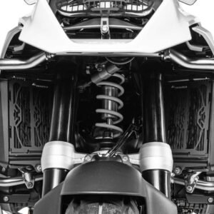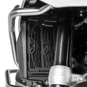 El protector de radiador Touratech, desarrollado especialmente para la R 1300 GS , combina una funcionalidad absoluta, un flujo de aire adecuado y una apariencia discreta. No queríamos que las rejillas ni la superficie del radiador resaltaran. Nuestra solución, fabricada en aluminio anodizado negro, cumple las tres funciones deseadas y, además, ¡es una excelente opción!