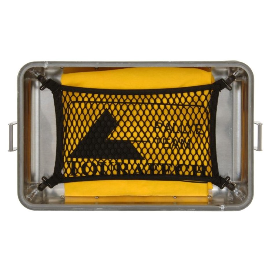 Creamos espacio adicional y orden con la red para equipaje en el interior de las tapas de las alforjas. Esto facilita, por ejemplo, sujetar un impermeable o una bolsa de lavandería dentro de la alforja. También puedes usar la red para sujetar una de nuestras bolsas pequeñas o accesorios a la tapa.