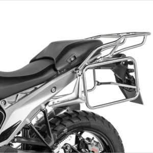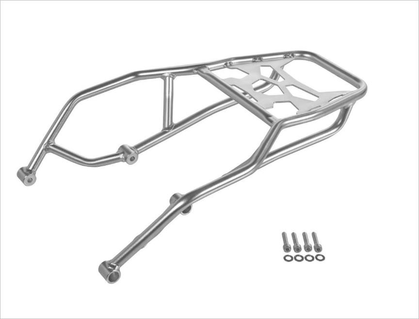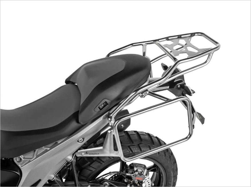 Los soportes para el baúl superior están fabricados con el mismo tubo de acero inoxidable de 18×2 mm, robusto y resistente, que se utiliza en los soportes para maletas laterales Touratech. Su construcción especial garantiza una estabilidad y resistencia excepcionales, gracias a su anclaje directo al chasis trasero mediante cuatro tornillos. ¡ Sujeción segura para tu equipaje incluso en las condiciones más extremas!